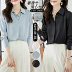 シャツ ブラウス 長袖 レディース ワイシャツ 開襟シャツ 春 秋 薄手 通気性 ビジネス カジュアル オフィス レギュラー 着痩せ 通勤 無地