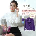 ワイシャツ ブラウス レディース ビジネスシャツ 長袖 上品 薄手 フリル 事務服 ハイネック 立ち襟 白 可愛い おしゃれ インナー 透ける OL 就活 大きサイズ