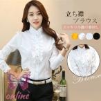 ビジネスシャツ レディース 長袖 ワイシャツ ブラウス オフィス シャツ 立ち襟 フリル 秋服 大きいサイズ 事務服 フォーマル インナー OL おしゃれ カジュアル