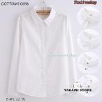 白シャツ レディース 長袖 ワイシャツ ブラウス トップス オフィス 綿100% コットン100% 丸襟 襟付き 大きサイズ 無地