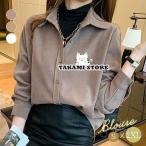 シャツ ブラウス 長袖 レディース ワイシャツ 開襟シャツ 春 秋 厚手 折り襟 ビジネス カジュアル オフィス レギュラー 着痩せ 通勤 無地