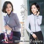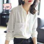 シャツ ブラウス 長袖 レディース ワイシャツ 開襟シャツ 春 秋 ストライプ柄 ビジネス カジュアル オフィス レギュラー 着痩せ 通勤 高級感