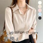 シャツ ブラウス 長袖 レディース ワイシャツ 開襟シャツ 春 秋 薄手 通気性 折り襟 ビジネス カジュアル オフィス レギュラー 通勤 無地