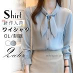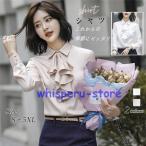 ブラウス レディース ワイシャツ 長袖 シャツ シフォン リボン付き トップス フォーマル 無地 エレガント シンプル ビジネス ゆったり OL 通勤