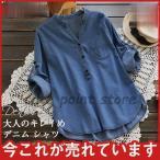 デニム シャツ レディース ブラウス 前開き ゆったり オフィス 着痩せ ストレッチ オシャレ 長袖 トップス カジュアル