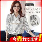 ワイシャツ ビジネス 事務服 フォーマル 通勤 ボーダー柄 ブラウス Yシャツ 長袖 オフィス 就活 レギュラー 入学式 レディース セレモニー