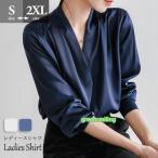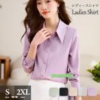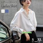 シャツ ワイシャツ レディース ブラウス 長袖 シフォン 開襟 前開き オフィス シンプル ゆったり 大きいサイズ 無地 着痩せ 通勤 夏 秋 新作