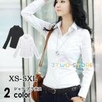 ブラウス シャツ レディース 長袖 ビジネス ワイシャツ 事務服 スリム フォーマル 開襟 インナー 白 OL 制服 ストレッチ Yシャツ