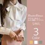 ブラウス レディース トップス シャツ ワイシャツ 長袖 リボン シフォン 春 無地 おしゃれ きれいめ 大人 上品 ゆったり 着痩せ 通勤 オフィス ビジネス 白 LHT