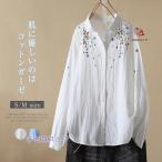 ダブルガーゼ シャツ レディース 綿 ブラウス 長袖 白シャツ コットン シャツ ワイシャツ コットンガーゼ 白 ホワイト ナチュラル 柔らか ゆっ
