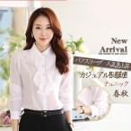 新作登場 ブラウス レディース 長袖 シャツ シフォン トップス 透け フリル 通勤 ワイシャツ フォーマル ビジネス スーツ 白 ホワイト ビジネス