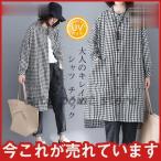 シャツ レディース チェック 日焼け止め ワイシャツ ロングシャツワンピース 長袖 夏 体型カバー とろみ 通勤 着痩せ トップス おしゃれ