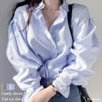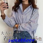 シャツ ブラウス 長袖 レディース ワイシャツ 開襟シャツ ストライプ柄 ゆったり 春 ライトアウター シャツ 秋