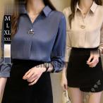 ワイシャツ ブラウス レディース 長袖 Vネック 開襟 サテン素材 ベーシック 無地シャツ 通勤 事務服 オフィス 大きいサイズ 春 秋 トップス シャツ