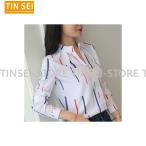 シャツ ブラウス 長袖 レディース ワイシャツ 開襟シャツ 春 秋 ストライプ柄 ビジネス カジュアル オフィス レギュラー 着痩せ 通勤 高級感