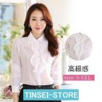 シャツ スタンドカラー ブラウス レディース 長袖 スーツ インナー 白シャツ トップス フォーマル 無地 ビジネス 立ち襟 通勤 可愛い 袖フリル 入学式 卒業式