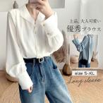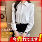 シャツ ブラウス 長袖 レディース ワイシャツ 開襟シャツ 春 秋 薄手 通気性 折り襟 可愛い カジュアル ゆったり 着痩せ 通勤 通学 無地