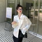 夏新作春シャツ 長袖 ワイシャツ 光沢あり バルーンスリーブ レディース フォーマル トップス デザイン 無地 おしゃれ 白 黒 上品 ゆったり 通勤 OL オフィス ボ