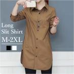 シャツ ブラウス レディース 長袖 通販 シャツブラウス ロング ワイシャツ Yシャツ チュニック おしゃれ トップス 前開き サイドスリット スリム シャツ