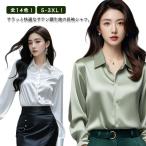 サテン調 シャツ レディース サテン ブラウス 長袖シャツ 光沢 つるつる 無地 女性 OL おしゃれ ワイシャツ オフィス カジュアル 通勤 春服