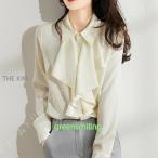 シャツ リボン フリル ブラウス レディース スーツ 長袖 ビジネス シフォンブラウス 立ち襟 おしゃれ エレガント ワイシャツ ロング袖 フォーマル 通勤 OL