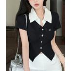 ニット セーター ワイシャツレイヤードニットカーディガン レディース