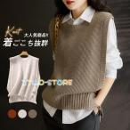 ニットベスト レディース 春服 プルオーバー チョッキ トップス ノースリーブ ゆったり 丸首 セーター 通学 通勤 OL カジュアル