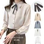 シャツ レディース トップス ブラウス 長袖 襟付きシャツ タック リボン 白 刺繍ラインシャツ 白シャツ 白ブラウス ワイシャツ レギュラーカラー ベーシック ボ