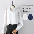 ブラウス レディース オフィス フォーマル 長袖 ボタン ストライプ スーツ インナー トップス 大きいサイズ 大人 会社 ビジネス 前開き ホワイト 白 ネイビー 紺