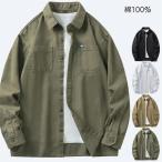シャツ 長袖シャツ メンズ おしゃれ 綿100% ワイシャツ カジュアルシャツ 無地 胸ポケット ビジネス ワークシャツ ミリタリーシャツ 春服