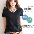 !Tシャツ 半袖 レディース カットソー 春 夏 薄手 Vネック 丸ネック 無地 体型カバー ルームウェア 柔らかい 快適