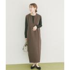 ワンピース 「セットアイテム」クルーネックニット×Aラインキャミレイヤードワンピース