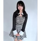 セットアップ ツーピース 2点セット ニットワンピース シャツ 無地 チェック柄 襟付き 秋 冬 長袖 ノースリーブ ショート丈 リブニット おしゃれ 可愛い コンビ 量産型 カジュアル オルチャン 韓国 レディース ブラック ベージュ グリーン グレー S M L XL 大きいサイズ