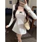 ドレス 2WAYチュールショート丈ブラウス×ホイルドットキャミソールワンピース 2点セットパーティードレス