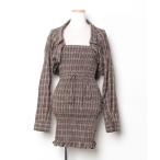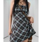ワンピース リボン ギャザー キャミソール チェック柄 フレア ミニ ワンピース