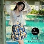 水着体型カバー ワンピース ショート丈 トップス 2点セット パッド シースルー フリル 大きいサイズ