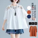 シャツ 刺繍シャツ ブラウス シャツブラウス 綿麻風ブラウス リネン風シャツ トップス レディース 半袖 ゆったり 刺繍 ふんわり 綿麻風 着心地 柔