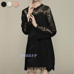 ワンピース レディース レース 長袖 ショート丈 ハイネック ペチコート 透け キャミソール ノースリーブ 薄手 ペイズリー