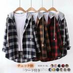 コート 羽織 シャツ スタジャン ブラウス 薄手 パーカー ドッキング フード付き チェック アウター レディース 前開き 大きいサイズ 長袖 春 夏 秋