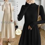 ニットワンピース リブニット レディース ハイネック 秋冬 ロングワンピース タイト キレイめ プリーツ フレア 大きいサイズ 長袖 Aライン ミモレ丈 ワンピ ゆっ