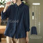 ダブルガーゼ シャツブラウス レディース ガーゼシャツ シャツ ブラウス 長袖 トップス 春 秋 綿 コットン カジュアル 春トップス 無地 プリーツデザイン 体型