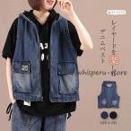 デニム ベスト レディース 春 夏 秋 ジレ ベスト レディース 春夏秋 レディースベスト おしゃれ 前開き トップス Gジャン ジージャン フード付き 大きいサイズ