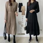 プリーツ ワンピース ロングワンピース シフォン レディース ロング丈ワンピース 長袖 ワンピ フォーマル 仕事 オフィス おしゃれ 可愛い 着やせ 春 秋