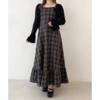 ワンピース タータンチェック フリル ティアード キャミソール ワンピース