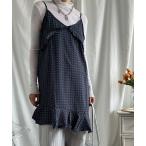 ワンピース リボン ギャザー キャミソール チェック柄 フレア ミニ ワンピース