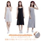 即納 SNS話題ワンピース ノースリーブワンピース 春 夏 レディース きれいめ インナー/アウター 綿 キャミソールワンピース シンプル ショート ミディアム ロング インナーワンピース 夏 ペチコート ボーダー 無地