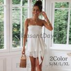 リゾートワンピース チューブトップワンピース オールインワン チューブ ノースリーブ ミニ ショート丈 スカート フリル ウエスト細身せ 可愛い 夏
