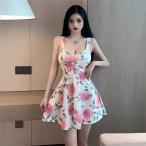 レディース ワンピース チュニック ショートドレス パーティードレス ノースリーブ 洋服 花柄 イベント ライブ 発表会 コスチューム 夏 女子衣装