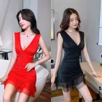 レディース ワンピース ショートドレス パーティードレス ナイトクラブ 洋服 ノースリーブ 制服 Vネック タイト フリル イベント ライブ 夏 女子衣装