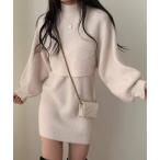 【宅配便で送料無料】【レビューを書いて10%OFFクーポンGET】2点セット ショートニット × ノースリーブ ワンピース ニットワンピース タイトワンピース ドルマンスリーブ 膝丈 ショート丈 セットアップ アンサンブル ツーピース ニットスーツ 長袖 厚手 秋 冬 レディース